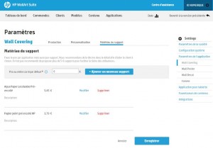 Dans les paramètres de votre compte, vous pouvez avec la nouvelle version de WallArt, insérer et renseigner une gamme de supports que vous proposez à l’impression tels que l’AquaPaper, les textiles, les toiles …